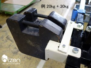 田植機の型式にもよるかもしれないが、現在溝切り機として使っているSPA6だと溝切り部が軽いため下降速度が遅く、ウエイト(左右各10kg)を載せて使用しています。